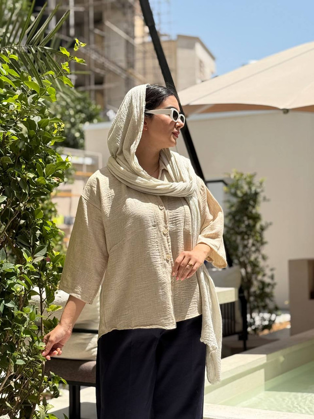 شومیز اسلپ یقه کنفی با طراحی خاص و پارچهی سبک خود، بهخوبی میتواند استایل تابستانی شما را تکمیل کند. بر خلاف بسیاری از شومیزها که در شستشو تغییر حالت میدهند، این مدل دوام بالایی دارد و بعد از شستشو همچنان ظاهر شیک خود را حفظ میکند.